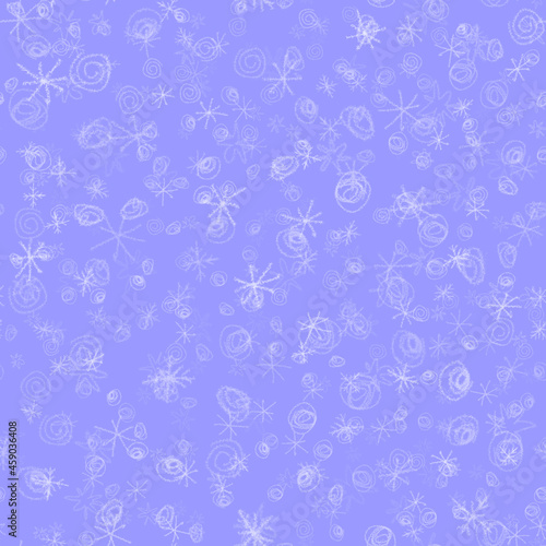 Hand Drawn Snowflakes Christmas Seamless Pattern. Subtle Flying Snow Flakes on chalk snowflakes Background. Awesome chalk handdrawn snow overlay. Majestic holiday season decoration.