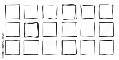 Hand drawn square frames. Doodle line square frame. Vector borders grunge template set.