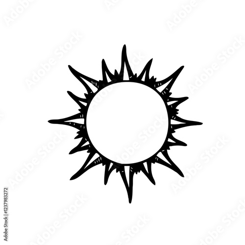 sun, solar, icon, symbol, black, white, doodle, hand, drawn, vignetting, celestial, energy, light, heat, weather, climate, summer, abstract, simple, design, vector, graphic, element, art, illustration, clip, shape, isolated, background, outline, minimal, drawing, artistic, signs, sunlight, ray, burst, shine, warm, glow, system