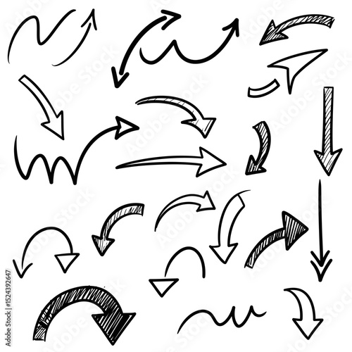 Hand drawn vector arrow set. All arrowes are isolated on white and groupped, easy to use.