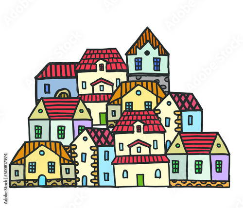 hand drawn vector illustration of old european city
