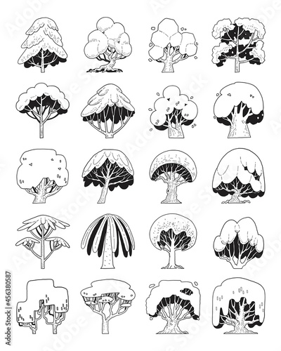 hand drawn vector set of side view tree.