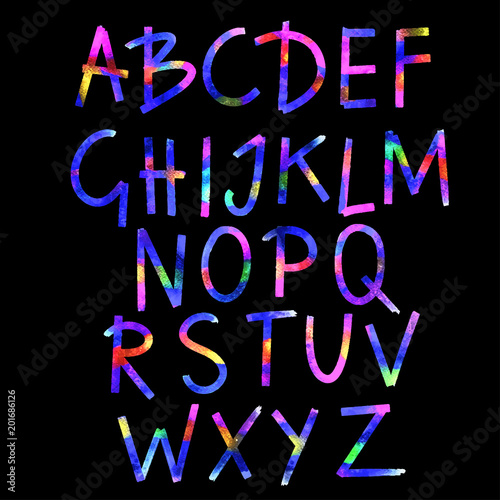 Hand drawn watercolor alphabet, font, letters
