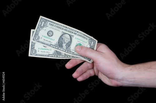 Hand giving dollar banknotes