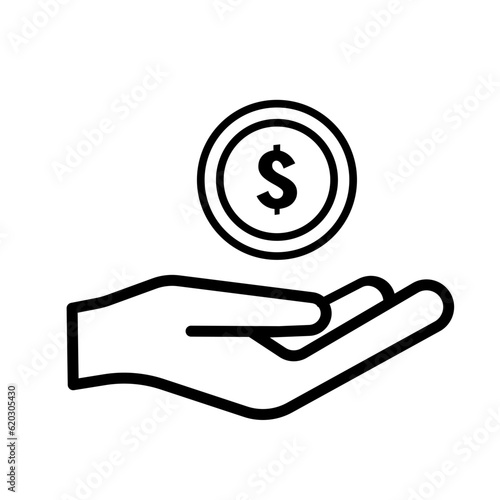 hand, coin, saving, icon, donation, gift, dollar, money, currency, symbol, business, buttons, finance, vector, cash, bank, economy, illustration