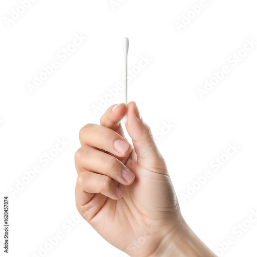 Hand holding a cotton bud isolated on white background
