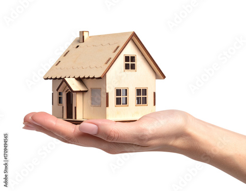Hand holding a house isolated on transparent or white background, png