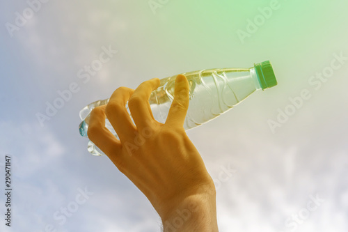 bottle, drink, water, background, thirst, hand, lifestyle, sky, blue, mineral, healthy, summer, hold, fresh, refreshing, clean, beautiful, cold, clear, hot, liquid, sun, transparent, bright, cloud, heat, water, concept, success, pure, backlit, heaven, glow, sparkling, reusing, dry, air, beverage, arm, sport, relax