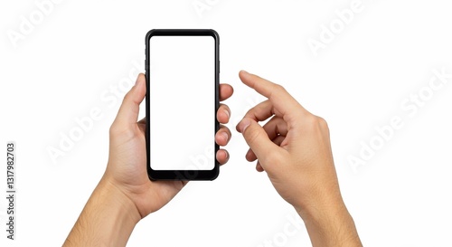 isolated, white background, mobile phone, touch screen, futuristic, technology, modern, innovation, contraption, communication, business, connectivity, cyberspace, wireless, editable, realistic, isolated object, human hand, hi-res, simplicity, minimal, elegant, customizable
