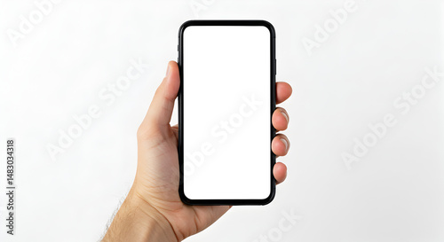 hand, smartphone, mobile, phone, device, technology, screen, blank, white, black, isolated, digital, communication, modern, electronic, portable, display, mobile phone, smart, contraption, touch screen, cyberspace, wireless, finger, thumb, holding, grip, plain, studio, minimalist, clean, contemporary, application, connectivity, template, presentation, advertising, promotion, demo, cellular, telecom, object, closeup, person