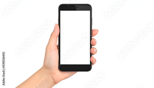 smartphone, mobile phone, mobile phone, hand, holding, blank screen, white background, technology, device, digital, communication, cyberspace, app, application, website, display, touch screen, contraption, portable, wireless, modern, isolated, female hand, woman's hand, clean, simple, minimal, electronic