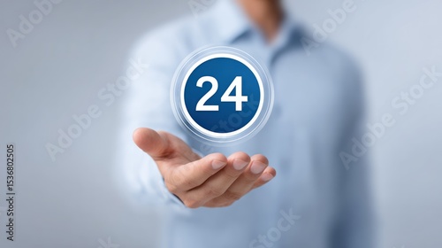 Hand Holding Circular Number Twenty-Four Icon with Blue Background