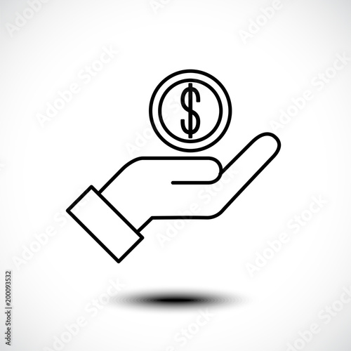 Hand holding coin line icon. Vector illustration