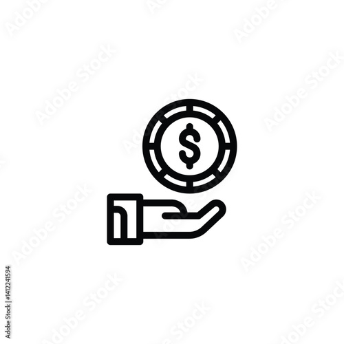 hand, holding, coin, dollar, symbol, currency, money, finance, investment, wealth, payment, icon, graphic, line art, vector, illustration, signs, black, white, simple, open, giving, receiving, offering, monetary, value, business, economy, banking, exchange, transaction, financial, arm, minimalist, modern, element, isolated, single, paying, earning, concept