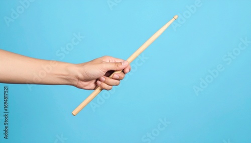 drumstick, hand, drumming, music, percussion, rythm, beat, instrument, musician, drummer, wood, wooden, blue, background, plain, simple, studio, isolated, practice, performance, concert, band, art, entertainment, hobby, skill, talent, action, holding, grip, finger, wrist, arm, studio shot, closeup, horizontal, person, accessory, equipment, object, culture, education, lesson, learning, sound, performer, bright, clean, contemporary