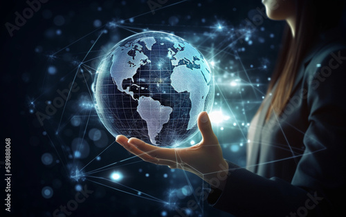 hand holding earth symbolizing network and big data
