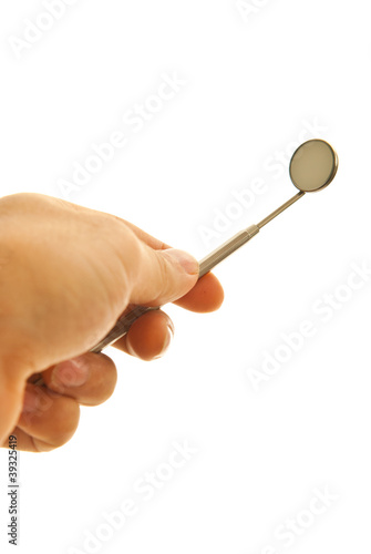 dentist, dental, tool, mirror, hand, give, giving, dentistry, stomatologist, hygiene, oral, dentistry, one person, people, human, doctor, white background, studio shot, health, health care, medicals, care