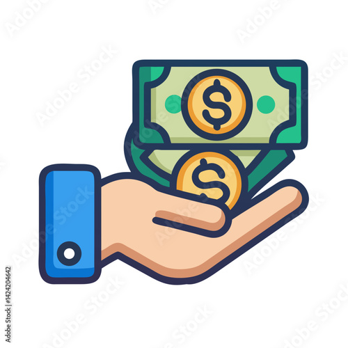Hand Holding Money Icon Representing Financial Transaction and Wealth