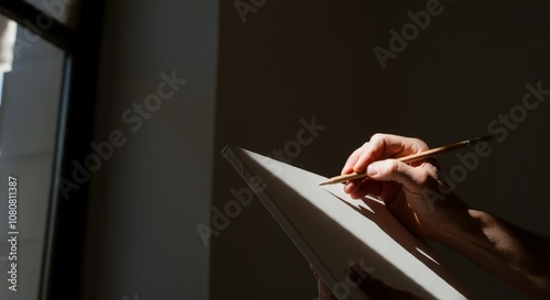 Hand Holding Pencil Above Blank Canvas Ready to Draw