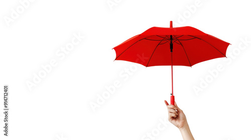 Hand holding red umbrella on transparent background