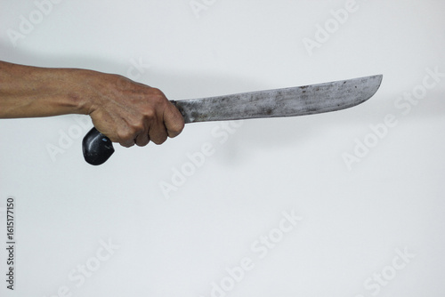 arm, assault, attack, blade, burglar, chopping, closeup, conflict, crime, criminal, crisis, cutting, danger, defense, fear, hand, holding, illegal, isolated, jungle, knife, law enforcement, machete, metal, murder, murderer, old, panic, police, robber, robbery, rustic, security, self protection, sharp, survival, thieving, thief, threat, tool, violence, warning, weapon, white background