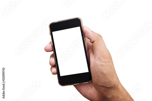 Hand holding smartphone isolated