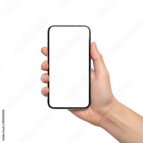 smartphone, mobile, phone, hand, blank screen, white background, isolated, device, technology, contraption, modern, sleek, mobile device, communication, connectivity, digital, screen