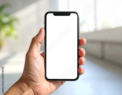 Hand Holding Smartphone with Blank White Screen – Mockup Template for UI and App Design