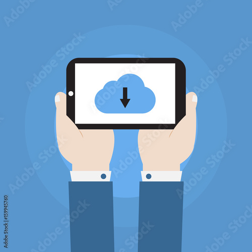 hand holding smartphone with download icon vector design