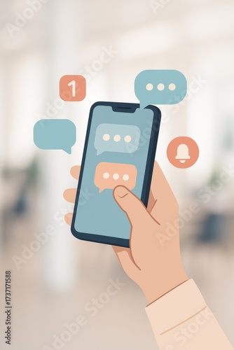 smartphone, message, communication, technology, hand, digital, casual attire, interaction, alert, mobile, workplace, chat, engagement, virtual, connectivity, lifestyle, screen, graphic design, illustration, business, phone, conversation, informal, workspace, user, device, message, background