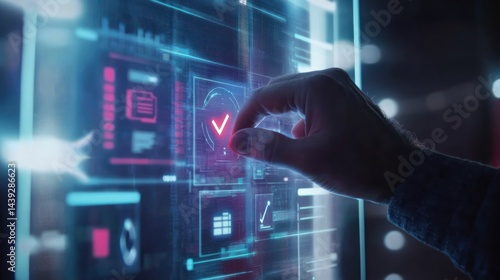 technology, interface, holographic, hand, city, approval, futuristic, digital, screen, checkmark, innovation, future, progress, success, computer, datum, network, information, system, cyberspace, web, modern, science, graphic, design, abstract, concept, business, solution, development, research, global, connection, communication, earth, smart, virtual, reality, interaction