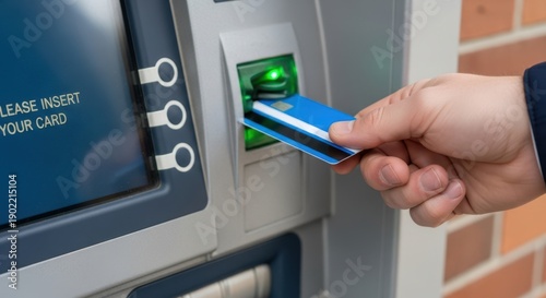 hand, of, man, with, a, credit, card, using, an, atm, machine, for, banking, service