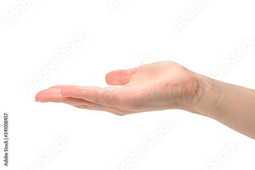 Hand of woman isolated on white.