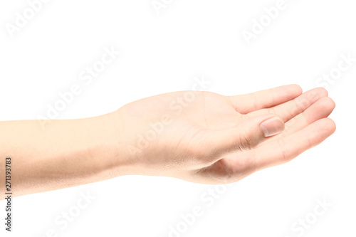 Hand open and ready to help or receive. Gesture isolated on white background with clipping path.