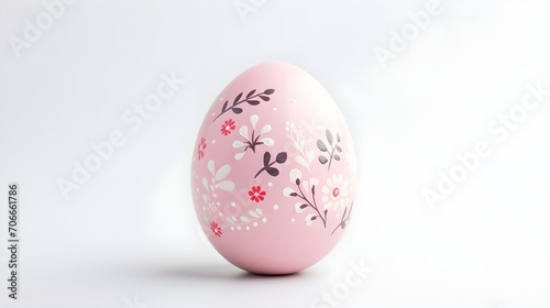Hand Painted Easter Egg in light pink Colors on a white Background. Elegant Easter Template with Copy Space