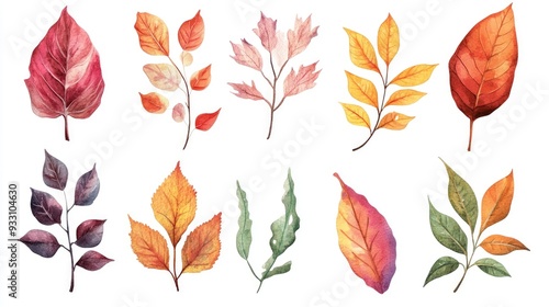 Hand painted watercolor leaves element converted into a digital format