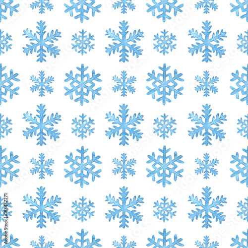 Hand painted watercolor snowflakes. Christmas and New Year seamless pattern