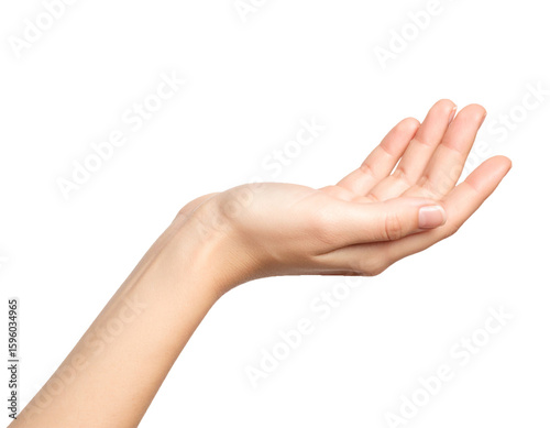 Hand palm open gesture receiving giving support skin on transparent background