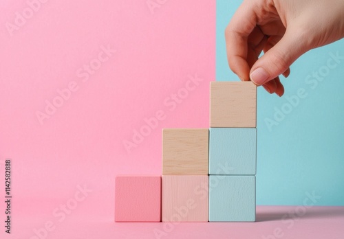 hand, stacking, growth, pink, blue, background, creativity, investment, strategy, business, development, progress, design, minimalism, modern, children, play, education, building, arrangement, teamwork, architecture, concept, planning, innovation, playroom, organisation, success, future, geometric, constructive, visual, learning, sharpened, artistic, nature, simplicity, balance, children, craft, lifestyle, inspiration, motion, object, environment, interior