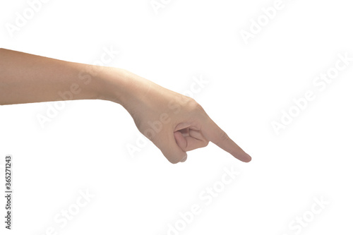 wrist, showing, symbol, point, signs, 1, finger, hand, human, arm, gesture, isolated, person, background, female, white, touch, business, press, up, concept, people, direction, skin, studio, closeup, click, woman, thumb, gesticulate, body, palm, caucasian, girl