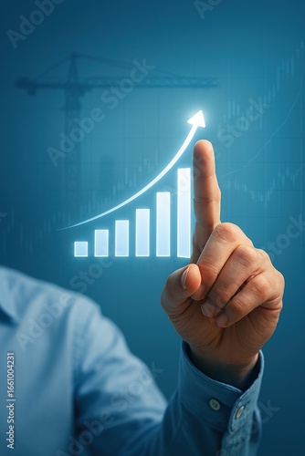 growth, success, finance, business, graph, chart, arrow, progress, development, increase, profit, investment, economy, stock exchange, performance, strategy, planning, achievement, goal, future, technology, digital, datum, analysis, insight, forecasting, marketing, sale, management, leadership, innovation, concept, abstract, blue, hand, finger, pointing, touch screen, virtual, presentation, report, statistic, economic, financial