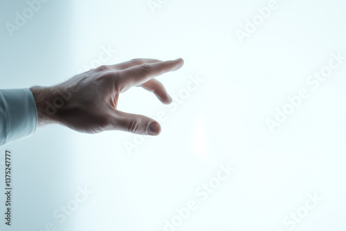 hand reaching out in minimalistic, futuristic setting, evoking sense of interaction and technology