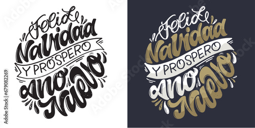 Hand sketched Feliz Navidad, Happy New Year Spanish, card, badge, icon typography. Lettering Feliz Navidad for Christmas, New Year greeting card, invitation template, banner, poster. Vector EPS10