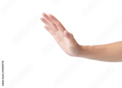 Hand stop gesture on white background