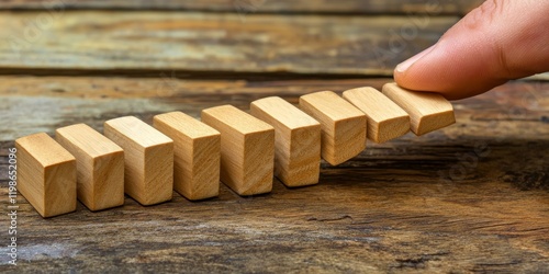 Hand stopping wooden domino business crisis effect or risk protection concept, Generative AI