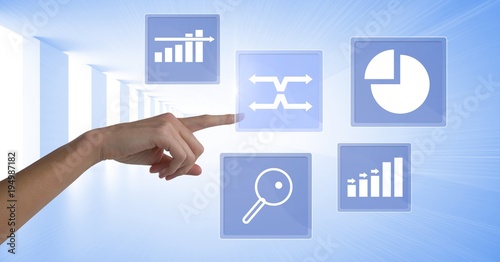 Hand touching business chart statistic icons