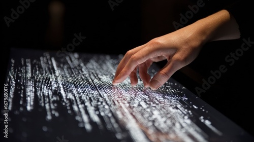 hand, touch, display, interactive, technology, interface, modern, digital, art, light, pattern, screen, glow, touch screen, gesture, datum, information, abstract, design, innovation, future, human, life events, interaction, graphic, white, black, dark, closeup, movement