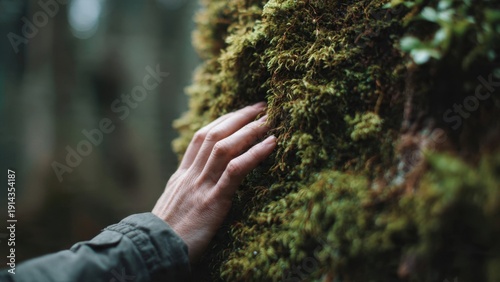 hand, moss, tree, forest, nature, touch, environment, green, texture, closeup, outdoors, calm, peaceful, connection, calmness, plant, growth, ecology, surface, detail, natural, flora, wood, wildlife, healthy, life, organic, well-being, care, conservation, sustainability, environmentalism, earth, harmony, reverence