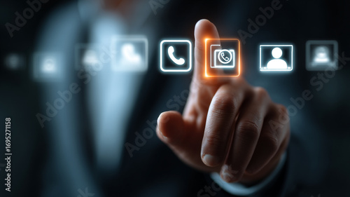 Hand touching virtual contact icons communication digital technology futuristic business innovation