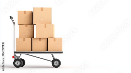 shipping, delivery, logistic, e-business, package, transportation, freight, cart, box, stack, cargo, moving, business, commerce, warehouse, distribution, transport, cardboard box, light brown, white background, simple, clean, minimal, studio shot, isolated, concept, illustration, graphic design, marketing, advertising